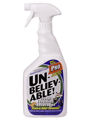 Unbelievable!® Urine Spot & Odor Remover eradicates tough urine stains and odors with the cleaning power of hydrogen peroxide. Our formula quickly breaks down urine to eliminate odors and remove stains. Formulated for hard-to-clean porous materials but safe on carpet, bedding and other materials.